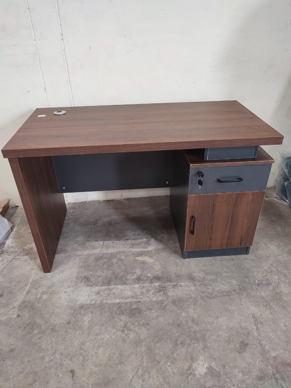 Equipped with a lockable drawer and cabinet, it ensures secure storage for files, stationery, and personal items, making it ideal for corporate offices, co-working spaces, and study environments. Its sturdy structure provides long-term reliability while maintaining a stylish design that blends seamlessly into any professional office setup.