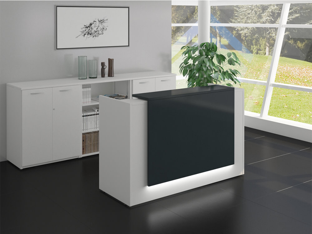 - Premium Reception Counter – High-end construction and styling appropriate for luxury office environments and corporate headquarters