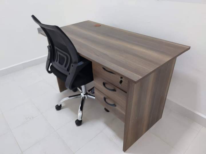 Upgrade your workspace with this Study Desk + Seat combo, designed for productivity and comfort in offices, co-working spaces, and learning environments. The desk is built with a durable wooden finish, featuring three lockable drawers for secure storage of files, stationery, and accessories. Its compact design makes it ideal for small spaces while maintaining a professional look.